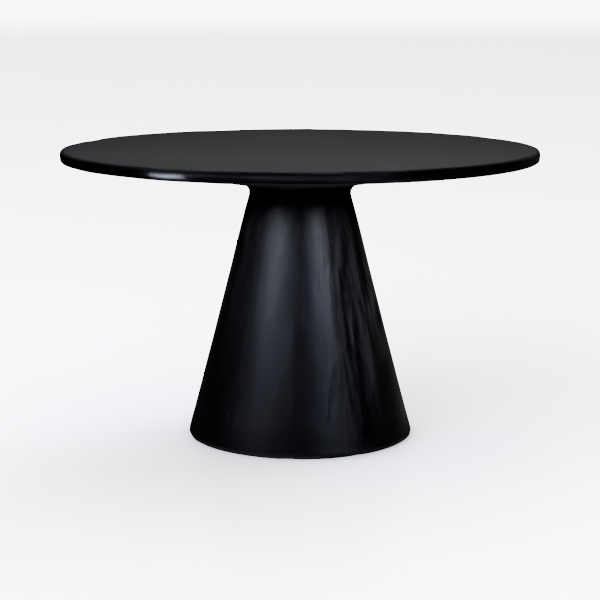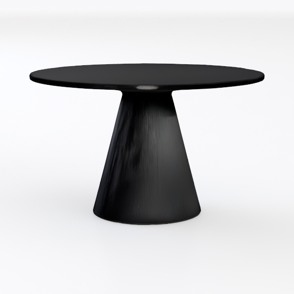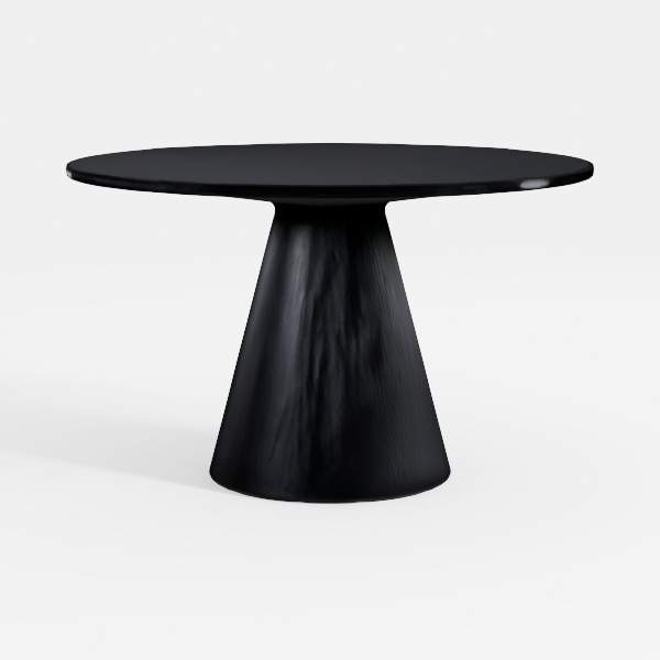 Inspired by the fluid lines of natural sculptures, this piece blends minimalist elegance with organic balance. Its smooth matte black top contrasts with the rich, subtle wood grain of the conical base, creating a tactile harmony of soft and textured surfaces. Ideal for modern, minimalist, or industrial living and dining areas, it pairs beautifully with metal lighting and neutral-toned sofas. The generous circular tabletop comfortably accommodates gatherings, while the stable, tapering base ensures steady support and a grounded presence.