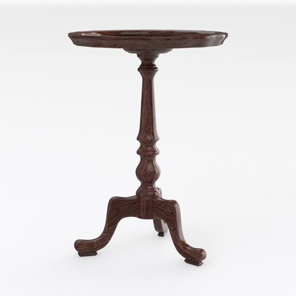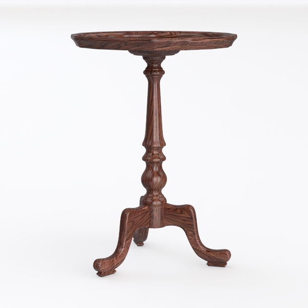 Drawing inspiration from 18th-century classical furniture, this wooden side table features a dark oak top with intricate grain patterns, smooth to the touch. Its fluted, tapering legs add subtle texture, creating a balanced, timeless silhouette under soft light. Perfect for a study nook or beside a vintage sofa, it pairs with marble coasters and brass lamps, while the sturdy tripod base ensures stability for books or coffee.