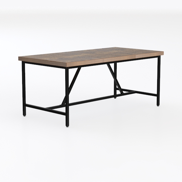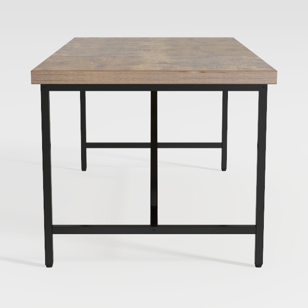 Inspired by the blend of natural wood and industrial metal, this table features a warm, textured wooden top that contrasts sleekly with a black metal frame, offering organic warmth and structural strength. Ideal for modern, industrial, or Scandinavian living/dining, it complements marble accents and soft lighting. Sturdy legs ensure stability; the spacious surface suits meals or work, balancing style and use.