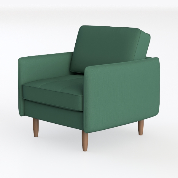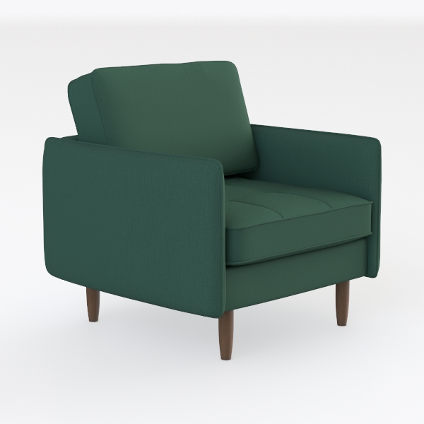 This armchair merges mid-century modern simplicity with contemporary coziness, taking cues from the organic warmth of nature and the clean lines of 20th-century design. The deep, forest-green upholstery—soft yet subtly textured—echoes the lushness of emerald foliage, while its plump, well-cushioned seat and back cradle the body in gentle support, making it ideal for both quick sips of coffee and extended relaxation.