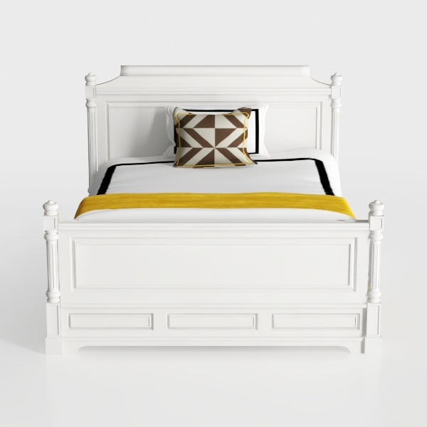 Inspired by 18th-century European classic furniture, this bed features a smooth white frame with delicate carved details, exuding timeless elegance. Its bright, clean surface feels soft to the touch, while the geometric-patterned pillow and yellow throw add warm contrast. Ideal for a neoclassical bedroom, pair it with dark wood floors and crystal lights for a cozy, upscale vibe. Sturdy construction ensures durability, with a supportive headboard for ultimate comfort.