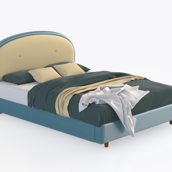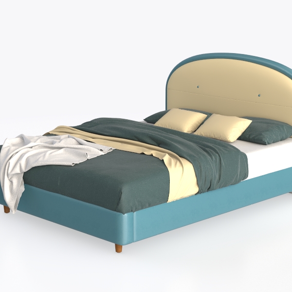 Inspired by soft, organic curves, this bed blends modern minimalism with warm comfort. The cream upholstered headboard, paired with a serene blue frame, feels plush to the touch, while the light color palette creates a calm, airy vibe. Perfect for a Scandinavian or modern bedroom, it pairs beautifully with wooden nightstands and linen bedding, enhancing the space’s cozy yet sophisticated feel. Sturdy wooden legs elevate the frame, ensuring stability, while the soft fabric upholstery offers gentle support for restful nights.