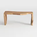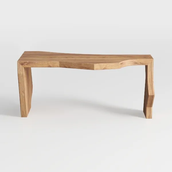 This piece draws inspiration from the serene flow of natural watercourses, where gentle curves and undulating forms mirror the movement of rivers over time. Crafted from solid, warm-toned wood, its surface reveals rich, visible grain patterns that celebrate the material’s inherent beauty—subtly textured yet smooth to the touch, evoking the comforting warmth of a well-worn wooden object. The tabletop, curving softly like a rippling wave, contrasts delightfully with its slightly tapering, angular legs, which lean into the organic theme while providing stable support.