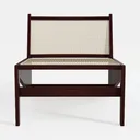 Brown Rubberwood Armless Accent Chair with PE Ratt