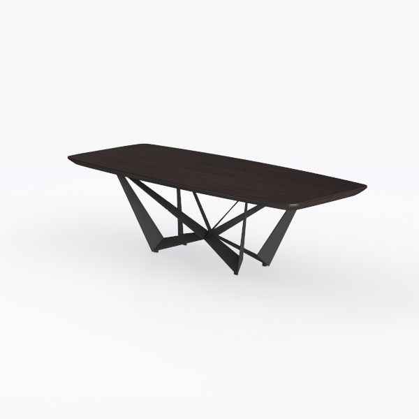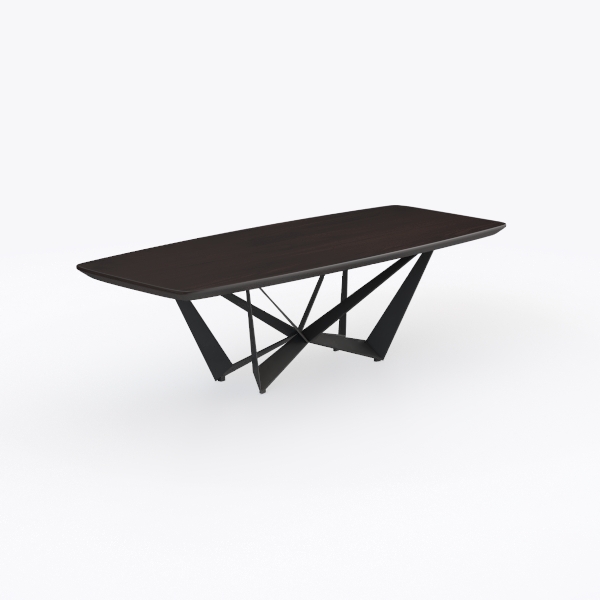 Inspired by architectural geometry, this table blends a sleek, warm wood top with rich grain and matte black metal legs, creating a striking textural contrast. It’s perfect for minimalist living rooms or dining areas, pairing beautifully with marble coffee tables or leather sofas. The sturdy, cross-braced base ensures stability, while the generous surface offers ample space for meals or gatherings.