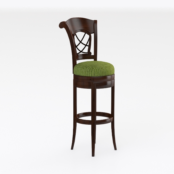 Inspired by classic mid-century bar stool designs, this piece features a smooth, dark wood frame with intricate lattice back, paired with a soft, textured green upholstery. It’s ideal for a retro kitchen island or cozy pub corner, blending warmth and vintage charm, with an ergonomic curved seat and sturdy base ensuring stable, relaxed seating.