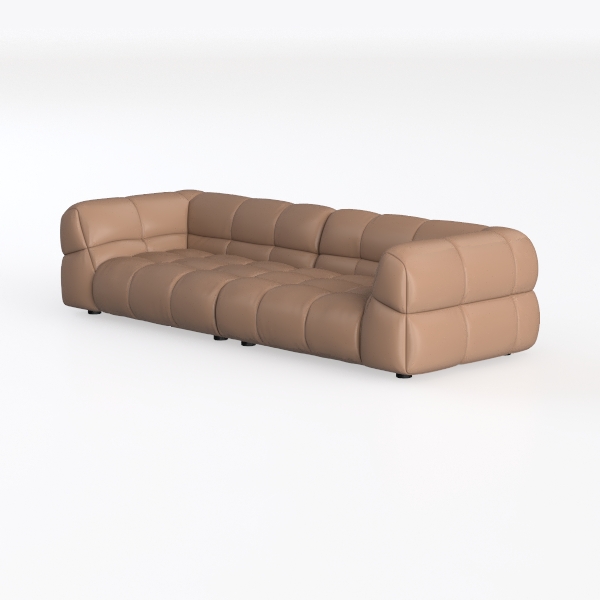 Ideal for a quiet luxury living space, it pairs beautifully with marble coffee tables, matte black metal floor lamps, and textured wool rugs. Its low-profile silhouette, balanced by slim, tapered legs, keeps the room feeling open, while the modular, block-like structure adds a touch of sculptural interest without overwhelming the space.