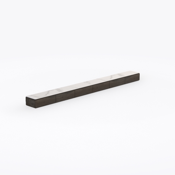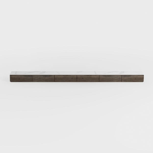 Inspired by organic minimalism, this long, sleek piece features warm, textured dark wood with smooth, veined white top. Its clean lines and neutral palette make it ideal for modern minimalist or Scandinavian living rooms, pairing beautifully with matte metal accents and potted greenery. Spacious drawers offer ample storage, balancing style with practicality.