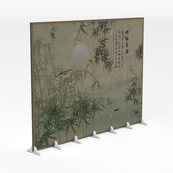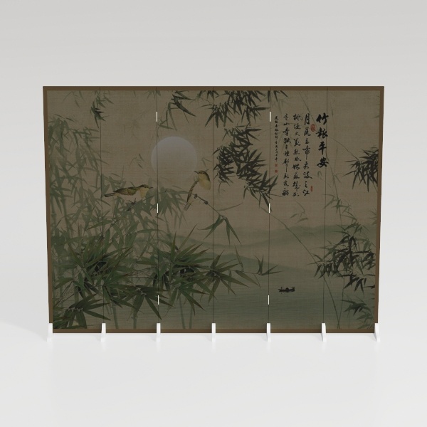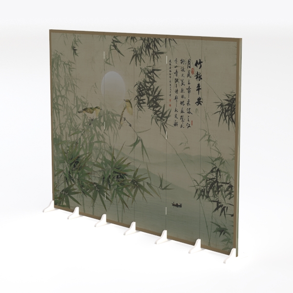 Inspired by classical Chinese ink painting, this folding screen features lush bamboo, birds, and a serene moon, with traditional calligraphy enhancing its cultural charm. Its smooth wooden frame and soft, muted tones create a tranquil visual experience, blending nature and art. Ideal for new Chinese-style spaces, it adds subtle elegance and functional division, infusing the area with peace and cultural depth.