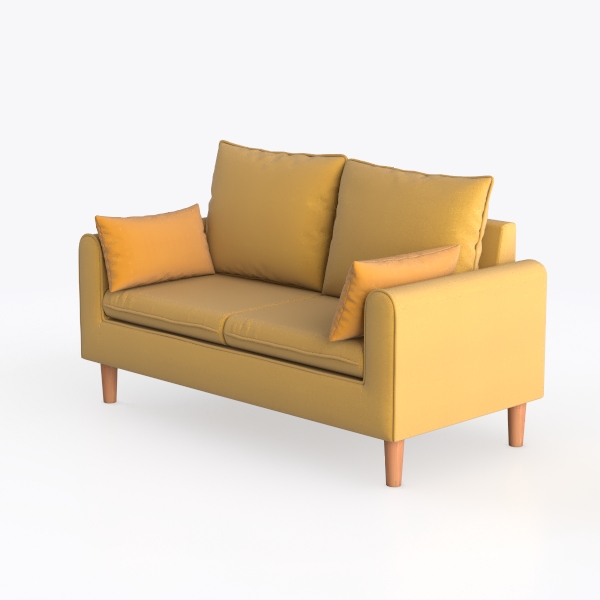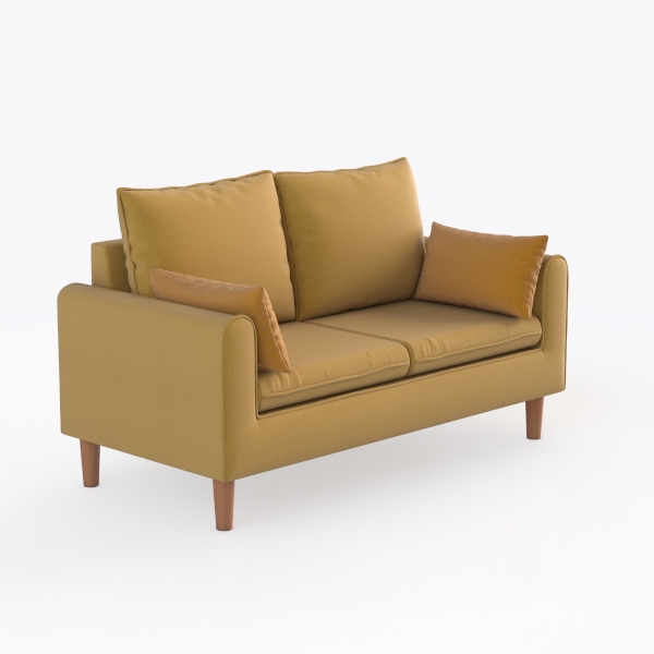 Loveseat - Mid Century Modern 65" Sofa, 2-Seat Upholstered Couch for Small Spaces, Yellow
