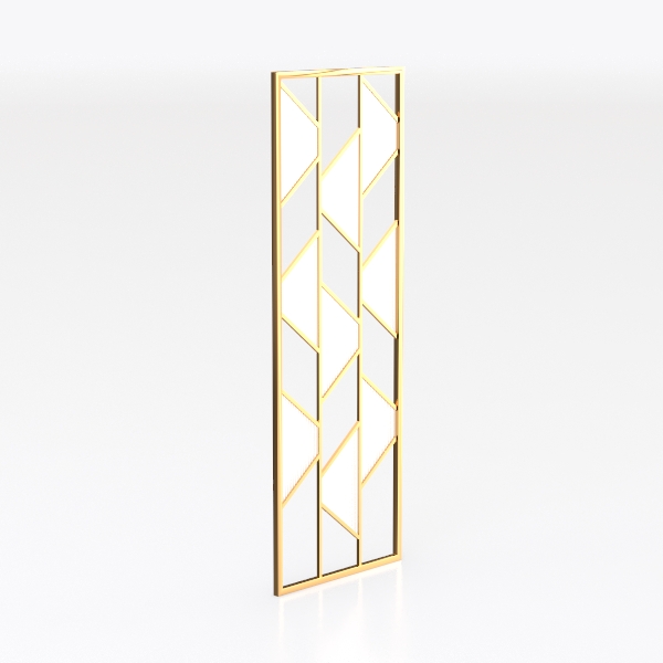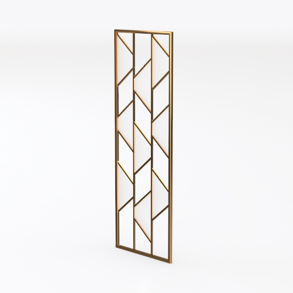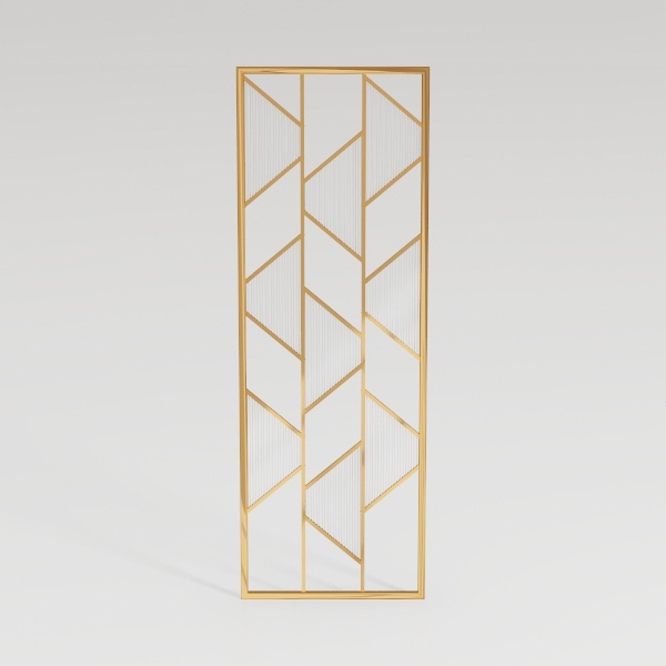 Inspired by Art Deco geometric symmetry, this golden room divider features a smooth, warm metal frame. Interlacing lines create a light, airy visual, blending elegance and modernity. Ideal for modern minimalist or contemporary spaces, it pairs beautifully with marble tables and velvet sofas, dividing rooms while letting light flow—balancing privacy and brightness.