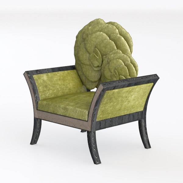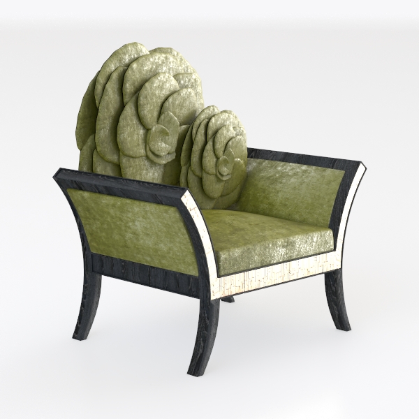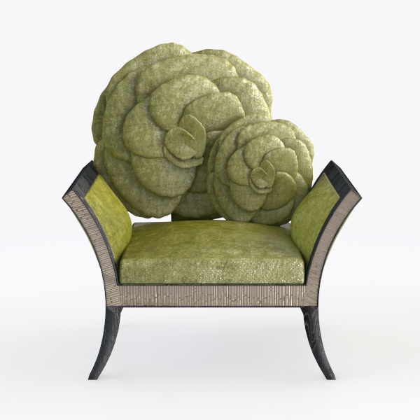 Inspired by blooming flora, this armchair blends organic softness with refined structure. The textured, soft green upholstery creates a tactile, natural feel, while the curved wooden frame adds elegant support. Its lush floral backrest enhances visual interest, making it perfect for modern bohemian or tropical living rooms. Pair with warm wood and greenery for a harmonious, comfortable space.