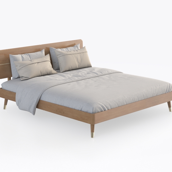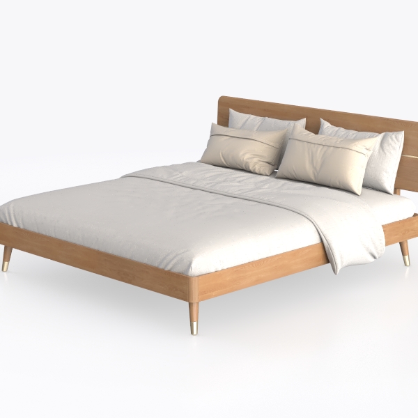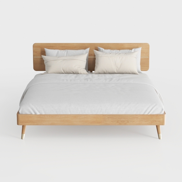 Inspired by natural simplicity, this bed blends warm wood tones and soft textures. Smooth oak headboard and frame offer tactile warmth, while crisp white linens add gentle, airy feel. Clean lines and light neutrals create a serene atmosphere, perfect for modern minimal or Scandinavian bedrooms. Sturdy wooden legs ensure stability, elevating the design for cozy, unwinding comfort.