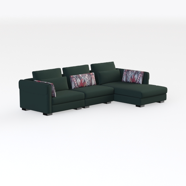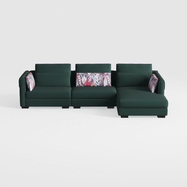 Inspired by the serene depth of a misty forest, this sofa marries organic warmth with contemporary simplicity. Crafted from a plush, velvety upholstery in a rich forest green, it feels incredibly tactile—like sinking into a soft, cloud-like embrace—with a subtle luster that catches light gently, balancing boldness with a grounded, earthy presence. Accented by vibrant, abstract-patterned cushions (featuring splashes of terracotta and cream), the design adds playful energy, making it a focal point that feels both sophisticated and approachable.