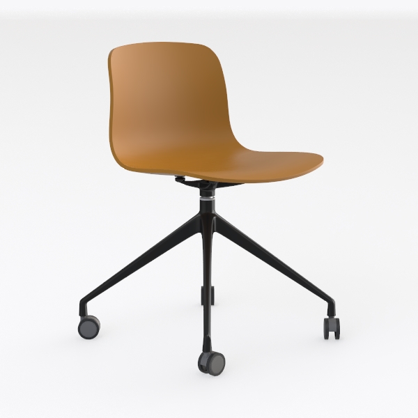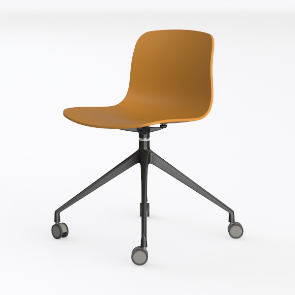 Designed with a blend of minimalism and practicality, this chair features a warm yellow seat with a smooth, matte texture, complemented by black metal legs that create a sleek, stable base. Its swivel casters allow easy movement, perfect for modern studies or living rooms, pairing well with wooden desks or minimalist coffee tables. The contoured seat ensures comfort, making it both functional and visually appealing.