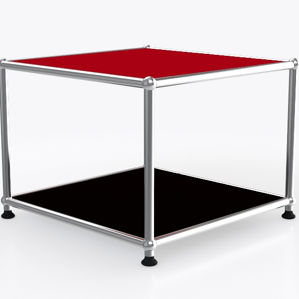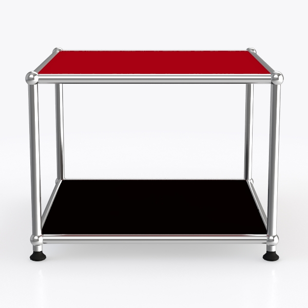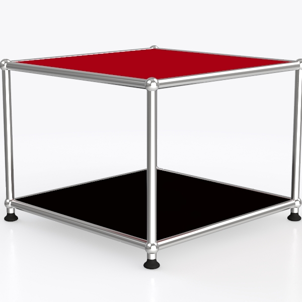 Designed to blend industrial edge with modern minimalism, this piece draws from geometric precision and bold color contrast. Sleek, polished metal frame exudes cool sophistication, while the soft red top and matte black lower shelf create tactile and visual harmony. Perfect for a contemporary lounge, it pairs beautifully with leather sofas and metallic accent lighting. Double-tiered structure maximizes storage, ideal for lamps, books, or decor, balancing style and utility seamlessly.