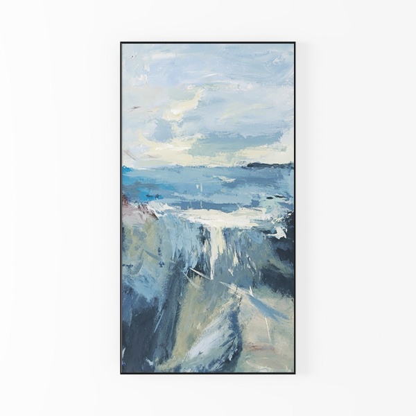Blue Beach Wall Art Ocean Theme Floral Print Decor Modern Bathroom Coastal Seascape Painting Picture Seaside Vase Floral Daisy Canvas for Home Bedroom Framed