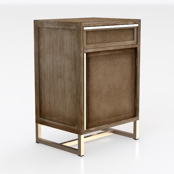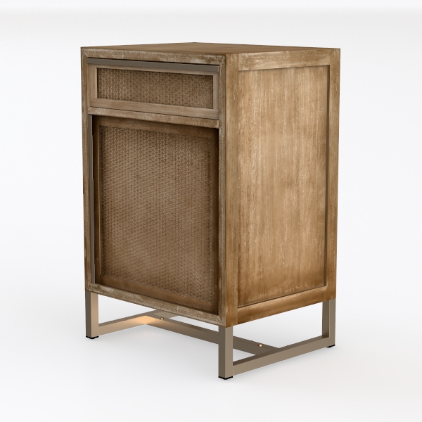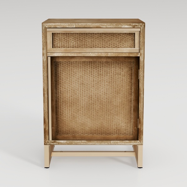 Crafted from natural materials, its design blends organic textures and timeless warmth. The woven paneling adds a tactile, artisanal touch, while the light wood frame exudes soft, inviting charm. Ideal for a cozy bedroom or minimalist living room, it pairs beautifully with modern or bohemian decor. A small drawer provides practical storage, ensuring clutter-free spaces with effortless elegance.