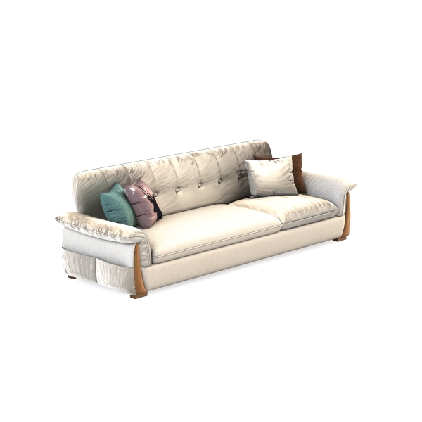Inspired by cozy, minimalist living, this sofa features soft, neutral upholstery with subtle button detailing. Wooden armrests add warm elegance, while the wide seat depth ensures exceptional comfort. Perfect for a modern living room, it pairs beautifully with earthy-toned cushions, enhancing its inviting, balanced vibe.