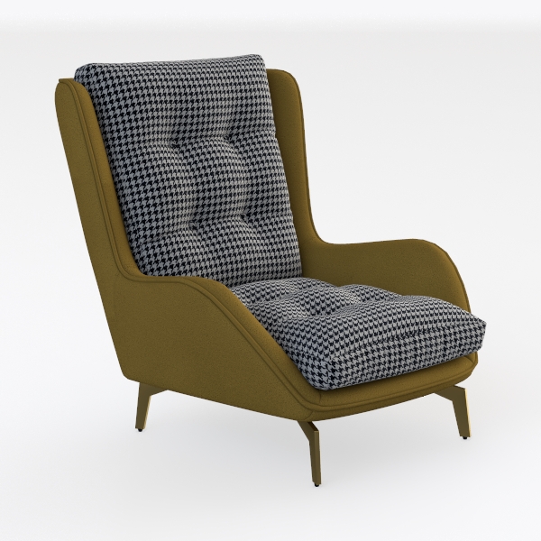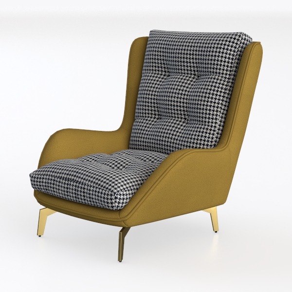 Ideal for both modern living rooms and复古-inspired spaces, it pairs effortlessly with marble coffee tables and brass floor lamps for a touch of luxury, or with wooden shelves and linen curtains for a more relaxed, Scandinavian vibe. Functionally, its generous seat depth and contoured backrest cradle the body, offering exceptional lumbar support—perfect for long afternoons of reading or casual conversations. Every element, from the houndstooth print to the gold legs, combines to make this chair a versatile statement piece that merges style, comfort, and enduring design.