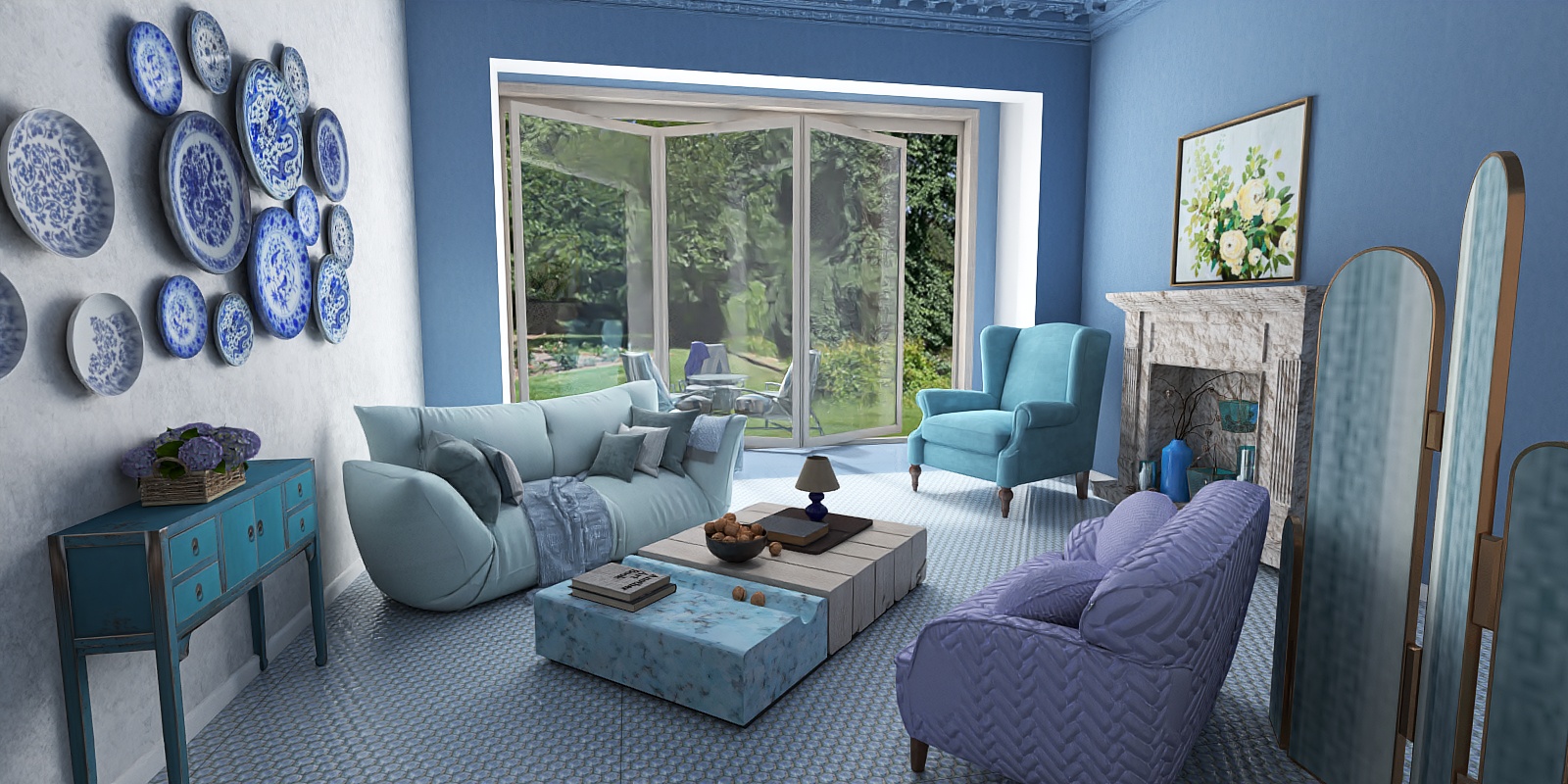 The fabric, with its subtle, plush texture, invites touch: it’s warm and slightly fuzzy, like petting a well-loved throw, while the light blue hue—soft yet not washed out—casts a serene glow, making the space feel open and tranquil. Subtle folds and curved edges add depth without clutter, catching light in gentle ripples that enhance its visual softness, turning it from a functional piece into a focal point of understated charm.
