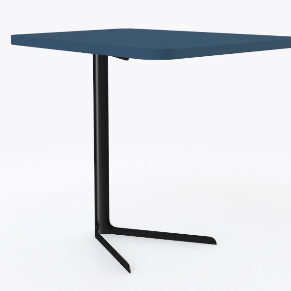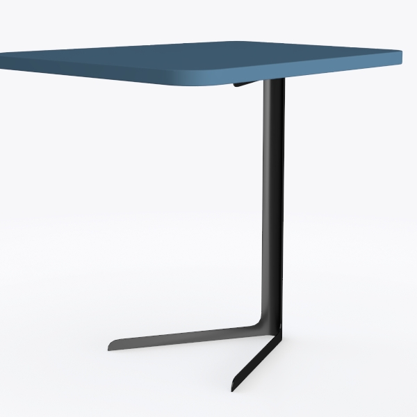 Inspired by minimalist Scandinavian design, this square table features a smooth, matte blue top and sleek black metal X-legs, blending cool modern aesthetics with a tactile mix of soft surface and rigid structure. Ideal for modern living rooms or studies, it pairs beautifully with light-toned furniture and potted plants, while the stable base and compact top offer ample space for daily essentials.