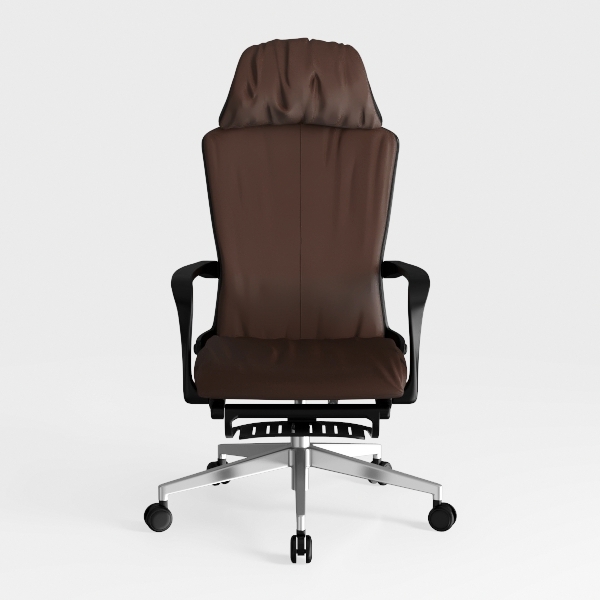 Designed with ergonomic precision, this chair features a smooth, rich brown upholstery that balances soft touch and sturdy support. Curved backrest and armrests create a streamlined, sophisticated silhouette, ideal for a modern home office or minimalist workspace, pairing seamlessly with sleek desks and metallic accents. Its adjustable height and swivel wheels ensure easy movement, while the robust metal base guarantees stability.