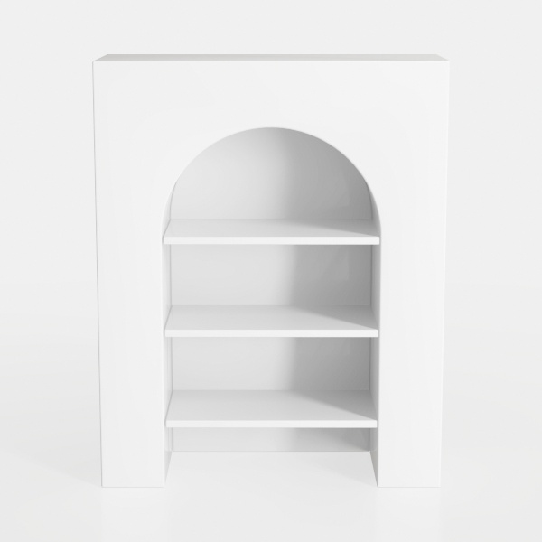 Inspired by classic architectural arches, this white shelving unit has a sleek, smooth surface with clean edges, radiating minimalist elegance. Its soft, even lines create a calm visual flow, ideal for modern, Scandinavian, or contemporary living rooms. Three spacious shelves offer ample space to display decor, books, or small plants, blending style and functionality seamlessly.