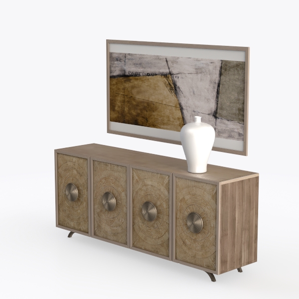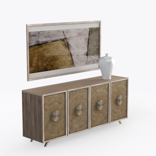 Millies Accent Cabinet with 4 Carved Doors, Farmhouse Sideboard Buffet Cabinet with Storage, Distressed Credenza for Living Room, Dining Room, or Kitchen, Antique Natural