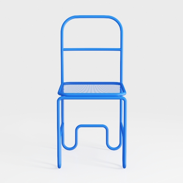 Designed with modern minimalism in mind, this chair features a sleek blue metal frame, smooth to touch, and a breathable mesh seat that offers lightweight comfort. Clean geometric lines create a striking visual presence, standing out subtly against neutral backdrops. Perfect for a contemporary dining room or home office, pairing beautifully with wooden tables and soft-toned sofas. Sturdy yet lightweight, it balances style and practicality for daily use.