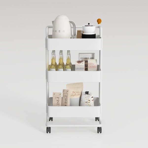 Inspired by minimalist living, this piece blends functionality with sleek aesthetics. Its matte white surface feels smooth and cool to the touch, with clean, uncluttered lines that keep the focus on the items it holds. Perfect for modern living rooms or compact kitchens, it complements both casual gatherings and daily routines. Three tiered shelves and rolling casters allow easy mobility, making it ideal for storing drinks, snacks, or small decor items.