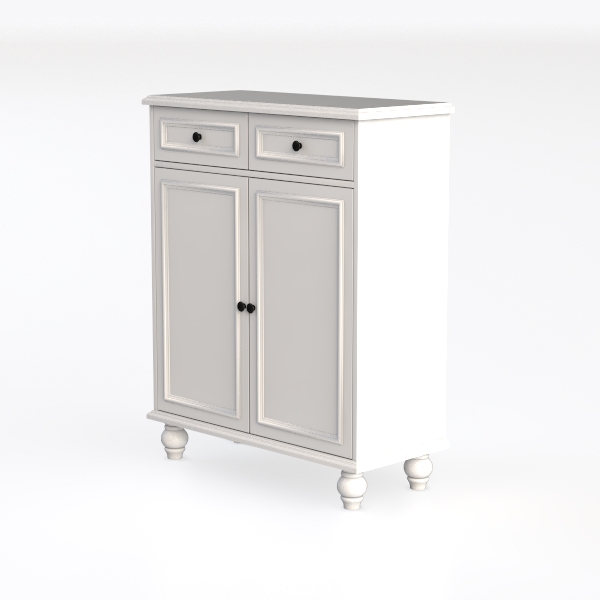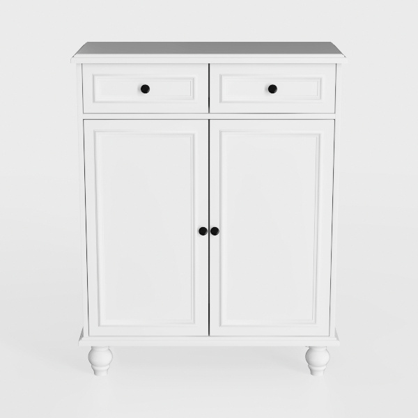 Designed with classic simplicity and modern minimalism, this white cabinet blends timeless charm with practicality. Its smooth, cool-to-touch white finish contrasts gently with matte black handles, while rounded spherical legs add subtle elegance. Ideal for Scandinavian or minimalist spaces, it fits living rooms/dining areas, pairing with light wood floors and soft walls. Two drawers and a double-door cabinet offer ample storage, keeping rooms organized and uncluttered.