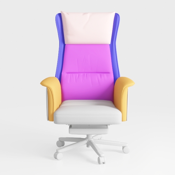 Inspired by modern art’s bold color collision, this chair features a sleek high-back with vibrant purple and blue upholstery, yellow armrests, and a crisp white seat. Smooth, premium fabric offers a soft touch, while contrasting hues and clean lines create a lively, contemporary vibe. Ideal for modern studies or living rooms, pairing with metal tables and geometric rugs to enhance pop art or minimalist style. A wide, padded seat and adjustable height ensure all-day comfort, blending style and practicality.