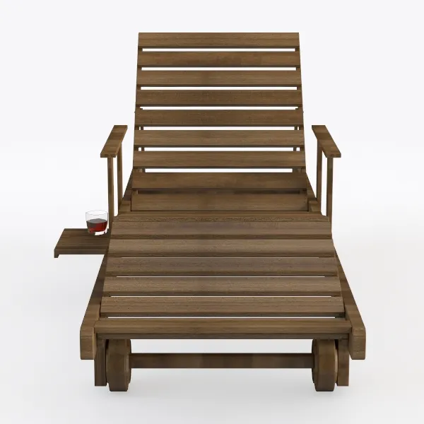 Inspired by natural warmth, this wooden lounger has smooth, grainy texture that feels comforting to touch. Its clean lines and warm brown hue create a serene vibe, ideal for a rustic-modern patio or sunlit living room. An adjustable backrest ensures relaxation, with a side tray for drinks and wheels for easy movement.
