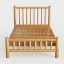 This wooden bed frame draws inspiration from the serene blend of Scandinavian design philosophy and the timeless appeal of handcrafted woodwork, focusing on unadorned, functional beauty that honors natural materials. The warm, honey-hued wood grain runs across its surface, with subtle variations that tell the story of the tree’s growth, while the smooth yet gently textured finish feels cool and inviting to the touch—cool initially, it softens slightly with body heat, enhancing the sense of comfort. In ambient light, the vertical slats of the headboard and footboard cast delicate shadows, creating a play of light and shade that infuses the room with a calm, earthy atmosphere.