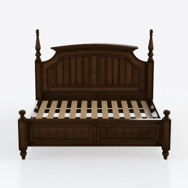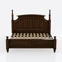 Crafted with classic craftsmanship, this bed draws inspiration from traditional designs, blending timeless elegance with modern practicality. Its rich, warm brown wood features smooth, polished surfaces and subtle grain patterns, offering a tactile warmth and sense of durability. Symmetrical lines and sturdy four-poster structure create grandeur while feeling cozy. Perfect for a vintage or rustic-chic bedroom, pair it with marble nightstands and soft linen bedding to enhance sophistication. Two spacious drawers under the slatted base add hidden storage, balancing beauty and daily utility.