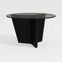 Designed with geometric precision and organic curves, this table blends architectural minimalism with soft visual flow. Its dark wood base features a smooth, sanded finish, while the clear glass top adds a sleek, transparent layer, creating a balanced contrast of warmth and coolness. Perfect for modern living rooms or minimalist dining areas, it pairs beautifully with marble side tables and metallic light fixtures. The round top offers ample space for daily essentials, and the stable, angled base ensures both sturdiness and visual lightness.