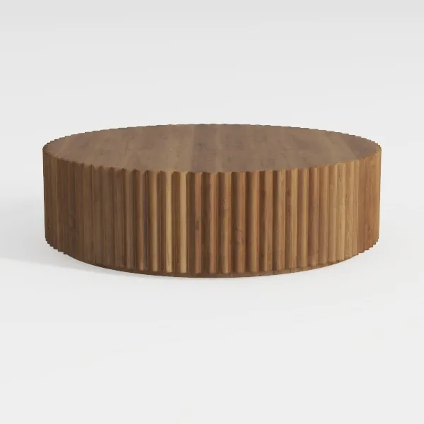 Crafted with inspiration from natural wood grain and geometric precision, this piece features a warm, tactile wood texture with smooth edges and vertical ribbed sides, blending organic warmth and structured elegance. Ideal for modern minimalist or Scandinavian living rooms, pairing beautifully with soft textiles and metallic accents. Sturdy base ensures stability, while the circular top maximizes surface space for coffee, books, or decor, balancing style and practicality.