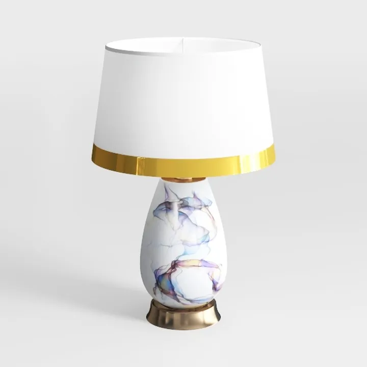 American Style Ceramic Table Lamp, Bedside Lamps with Fabric Shade, Modern Small Nightstand Lamp for Bedroom, Living Room(Button Switch)