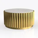 Inspired by classical architectural details reimagined for modern living, this centerpiece blends timeless elegance with contemporary minimalism. The base features vertical, fluted gold-plated metal panels, their polished surface catching light to create a warm, metallic glow that balances coolness with richness. Contrasting beautifully, the top is a smooth, veined white marble slab, its soft, natural patterns adding organic texture and a sense of calm to the piece.