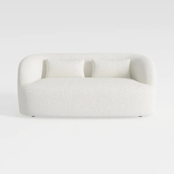 The sofa radiates a blend of serene minimalism and everyday warmth, inspired by the timeless desire to create a space that feels both fresh and nurturing. Its soft, cloud-like white upholstery forms a clean, uncluttered base, while gently curved armrests and a slightly rounded backrest add subtle softness to its modern silhouette, avoiding harsh angles for a comforting vibe.