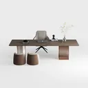 Inspired by organic minimalism, this home piece blends natural elements and geometric precision. Its warm wood grain surface, paired with smooth matte textures, creates an elegant, uncluttered visual. Perfect for a modern home office—ideal for Scandinavian or contemporary styles, with marble accessories and metal accents. A spacious tabletop holds work essentials, while an ergonomic chair and compact stools offer comfortable extra seating.