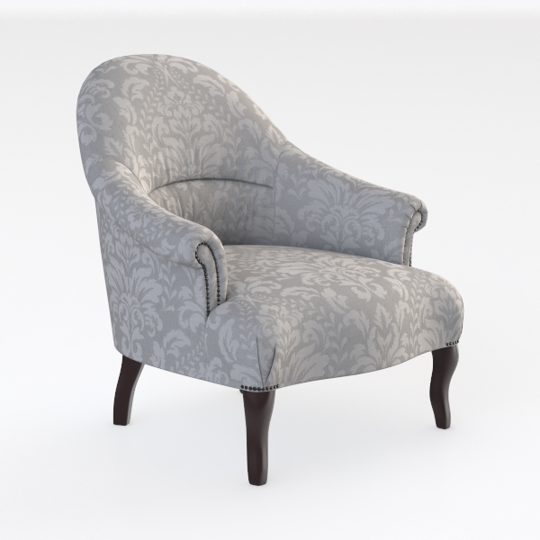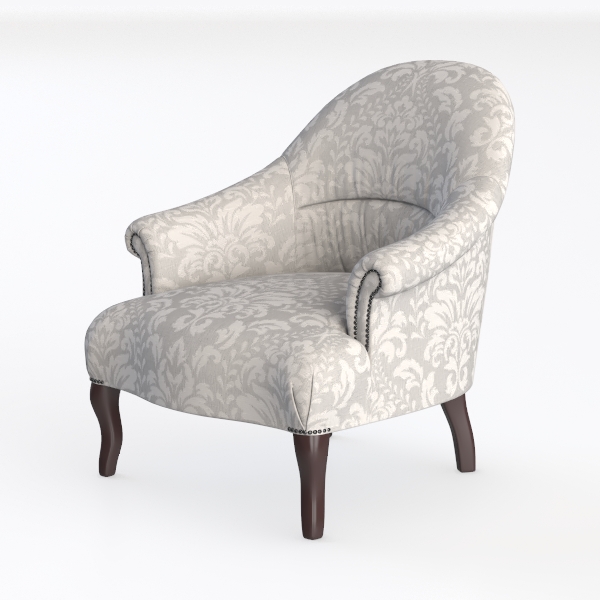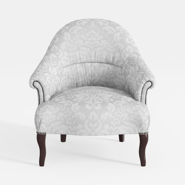 Drawing inspiration from the timeless allure of 18th-century European decorative arts, this armchair reimagines classic patterns with a modern, understated elegance. The upholstery features an intricate floral damask print in soft gray and white, creating a subtle, textural depth that catches light gently. The fabric feels surprisingly soft to the touch—luxurious yet durable, with a slight sheen that elevates its visual appeal. Curved and comfortable, the back and arms cradle the body, while the sloped seat invites relaxation, making it feel both inviting and supportive.
