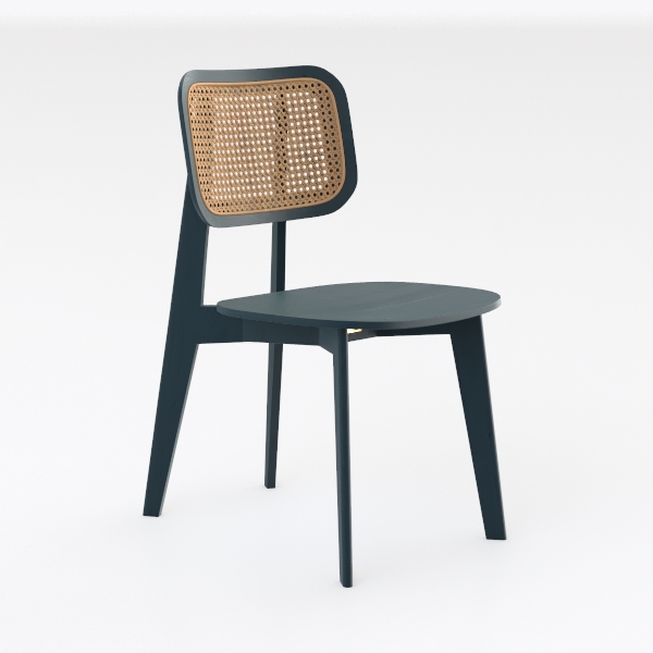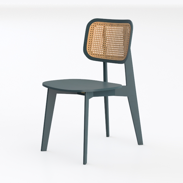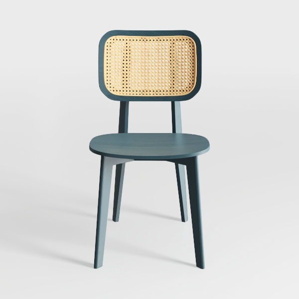 Inspired by the timeless interplay of natural textures and modern simplicity, this chair draws from a blend of traditional craftsmanship and contemporary design sensibilities. The backrest, a focal point, features a handwoven rattan pattern in warm beige—delicate, airy, and subtly textured, allowing light to filter through and creating a sense of openness. The frame, crafted from a rich teal wood, has a smooth, matte finish that enhances the wood’s natural grain, balancing the softness of the rattan with the solidity of the structure.