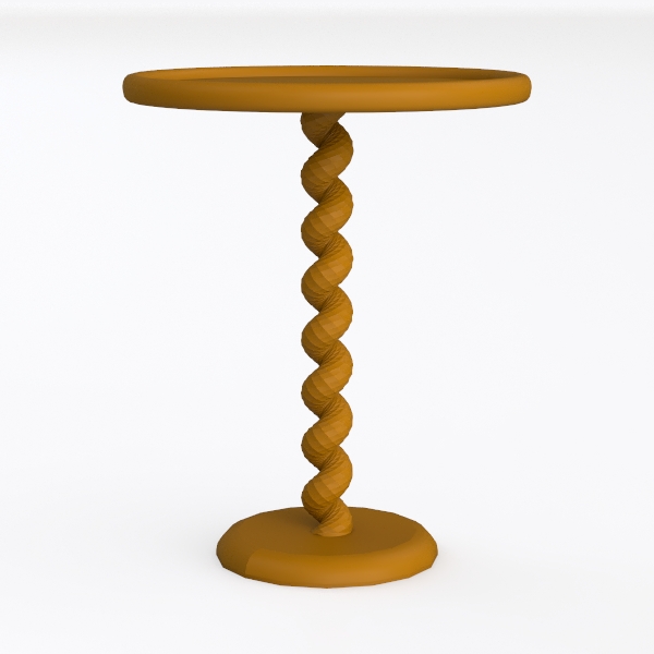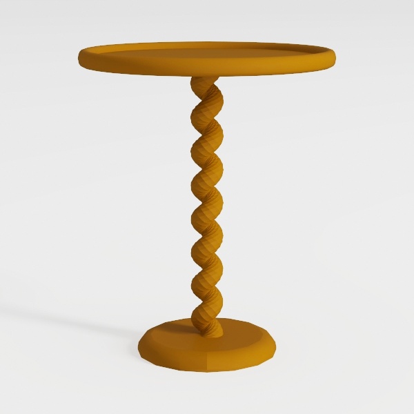 This elegant home accessory draws inspiration from the sinuous curves of natural vines and the rhythmic patterns of handwoven textiles, blending organic softness with modern minimalism. Crafted in a warm, earthy mustard hue, its smooth, matte surface catches light gently, creating subtle shadows that enhance the piece’s tactile allure. The standout feature is its twisted, spiral leg—each turn of the curve feels intentional, balancing visual dynamism with structural stability, making the table appear light yet surprisingly grounded.