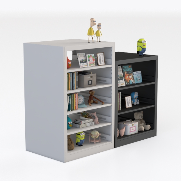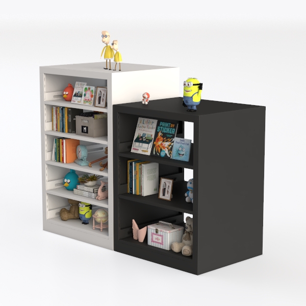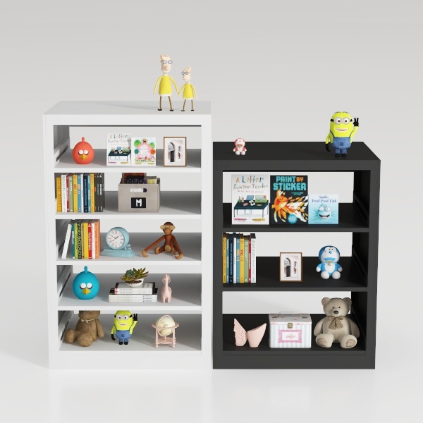 This set of shelving units blends functionality with warm, personal charm, drawing inspiration from the modern family’s desire for both organized storage and a space to showcase cherished items. The white and black frames feature smooth, matte finishes that feel solid yet gentle to the touch, while their clean lines and uniform height create a balanced, uncluttered base. On the shelves, a mix of vibrant toys—from plush figures to playful decals—softly contrasts with neatly arranged books, framed photos, and small potted plants, infusing the space with a cozy, lived-in energy.