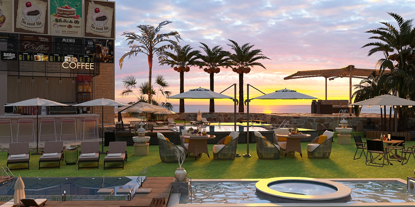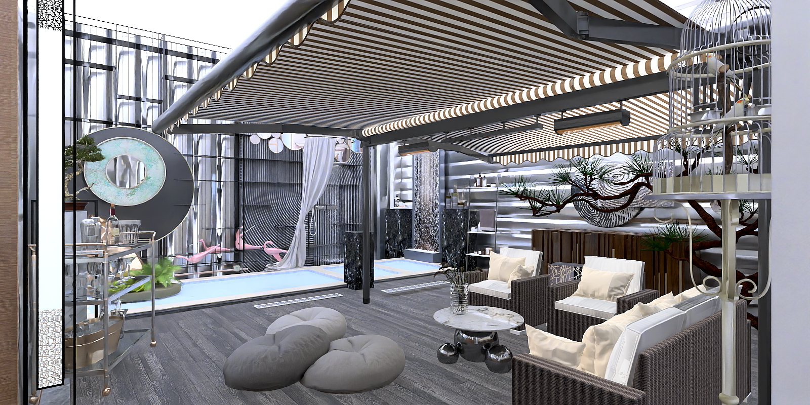 Crafted to blend the tranquility of shaded outdoor spaces with modern design sensibilities, this arrangement draws inspiration from the interplay of natural light and shadow in garden retreats, reimagining the joy of relaxed, sun-protected moments for contemporary living.