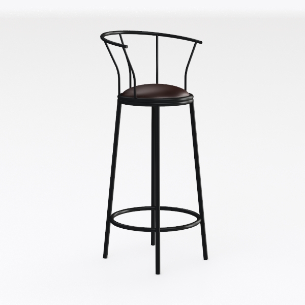 This elegant bar stool draws inspiration from the fluid lines of mid-century modern design, blending architectural precision with organic softness. Its frame, crafted from matte black metal, features a delicate curved backrest that gently cradles the upper body, while the legs, tapering subtly at the base, create a sense of lightness despite the stool’s height. The seat, upholstered in plush caramel leather, offers a warm contrast to the cool metal, inviting users to sink into its softness. Visually, the stool’s airy silhouette—with its open back and slim legs—makes it a versatile piece that complements both minimalist and industrial settings. It pairs seamlessly with marble-topped kitchen islands, wooden bars, or even sleek concrete counters, adding a touch of sophistication to any space. Functionality meets comfort here: the elevated height suits standard bar counters, while the wide, curved seat ensures all-day comfort during meals or casual chats. A subtle lower footrest ring not only reinforces stability but also adds a playful geometric element, balancing the stool’s graceful, timeless appeal.