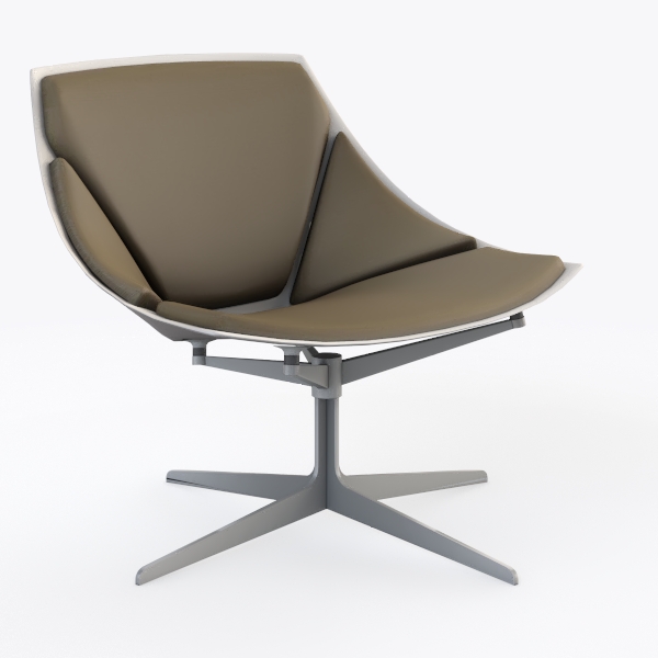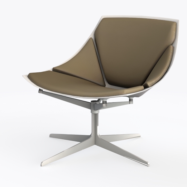 The seat and backrest feature a warm, earthy brown upholstery, likely premium leather or textured fabric, that feels plush and supple to the touch. The gently contoured curves cradle the body, offering immediate comfort even during extended use. Contrasting this softness, the frame is crafted from polished, matte silver metal, its intersecting, angular legs creating a light yet sturdy base that elevates the piece visually, making it appear grounded yet weightless against a clean backdrop.