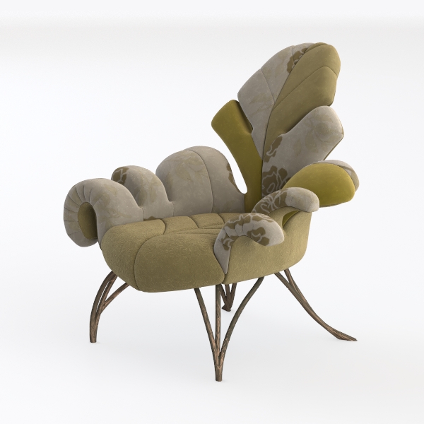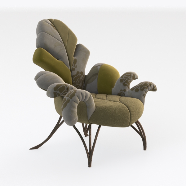 Inspired by the beauty of nature, this striking armchair embodies an organic aesthetic with its leaf-like design. The lush textures invite touch, while the combination of earthy tones and intricate patterns creates a warm and welcoming atmosphere. The plush upholstery offers a soft, comforting feel, perfect for moments of relaxation or conversation.
